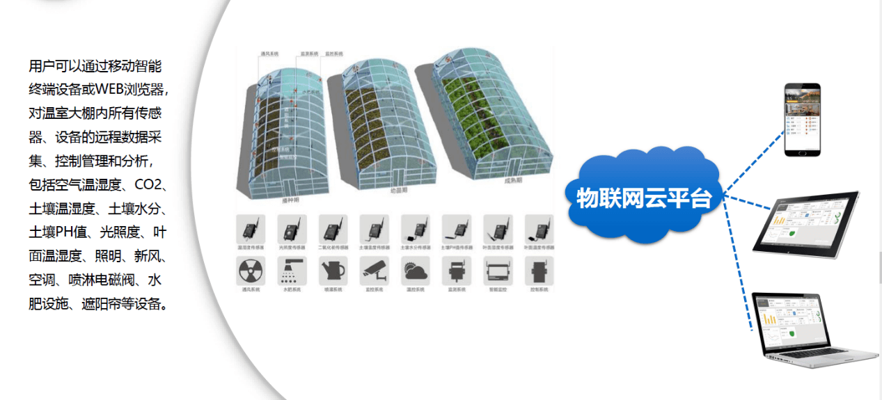 通过物联网技术,依托部署在农业生产现场的各种传感节点和无线通信网络实现农业生产环境的智能分析、可视化管理和决策。